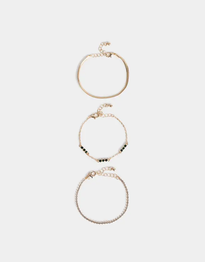 El set incluye una variedad cuidadosamente diseñada para adaptarse a diferentes preferencias. Con beads decorativos, una elegante cadena snake, y cristales brillantes, cada pulsera está hecha para durar y mantener su belleza. Los materiales seleccionados no solo son resistentes, sino que también ofrecen un acabado que eleva cualquier atuendo.